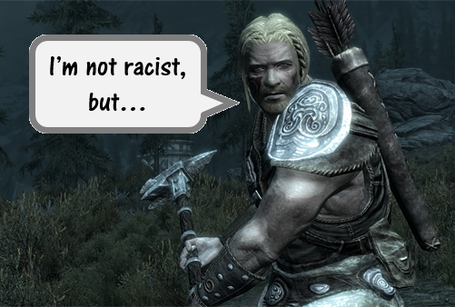 People in Tamriel are so mean too each other. Wherever you go, someone is talking trash about Dark Elves or Bretons or anyone who doesn’t look like them. It could be argued that racism is going to be more prevalent in a place where there are actually different races.