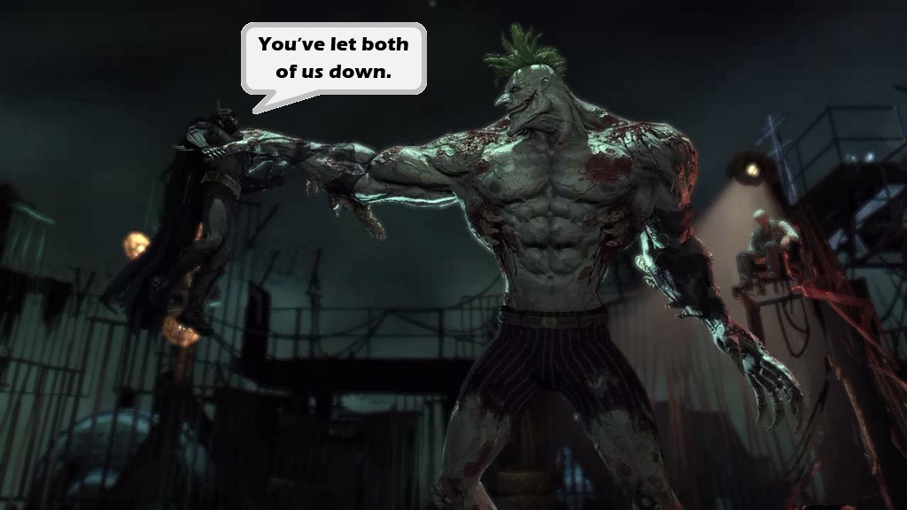 I’ve always had the impression that the developers of the Arkham series panic when they get to boss battles. Each villain is so iconic that they should have an encounter which feels epic, but some of these characters aren’t so tough once their evil plans and death machines have been swept away. So Poison Ivy gets a giant plant with special attacks and weak spots, whilst Bane gets to run at walls and look stupid. The fight with Mr Freeze requires you to adapt and use most of your skills to win, but Deathstroke requires only a mastery of QTEs.