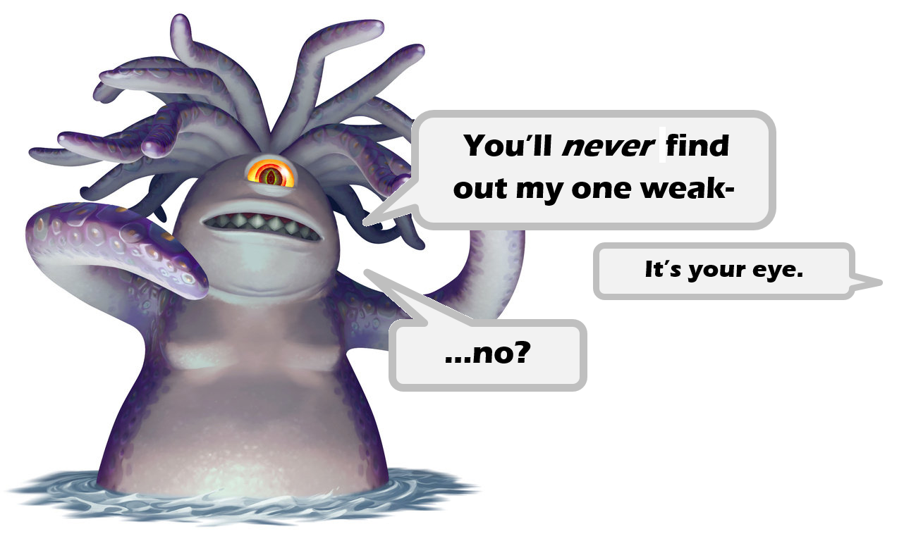 The more recent Final Fantasy games tend to include optional bosses. Of those optional creatures, at least one will be notoriously difficult to vanquish. So difficult in fact, that they trounce the attack and defensive powers of the final boss in their greatest form. This is a strange property to present in a game (why isn’t that thing the final boss? Does it know it could take over the world but can’t be bothered??) but this does highlight the appropriate challenge level for a boss fight.
