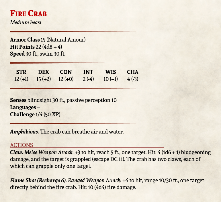 In the quest to convert Fantastic Beasts into Dungeons & Dragons monsters, there’s been some highs and lows. This week… it’s a crab that shoots fire from it’s butt…