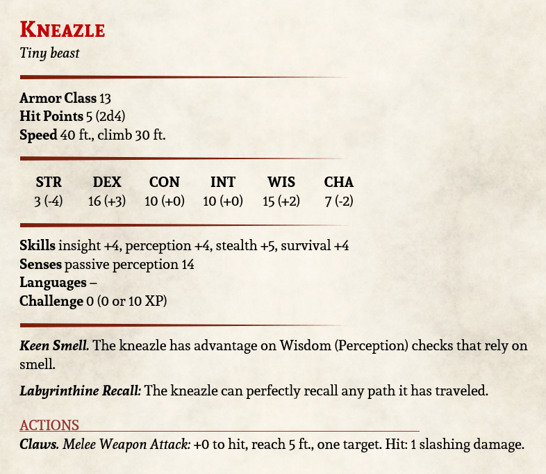 Of all the available skills, ‘Insight’ is not a skill you normally see attached to a beast, which makes this little critter a useful ally. The kneazle’s ability to sense mischief makers could save the adventurers some hardships along the way.
