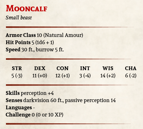 I mean, it’s cute. It’s also weird when the moon is out. None of that really lends to a thrilling stat block.