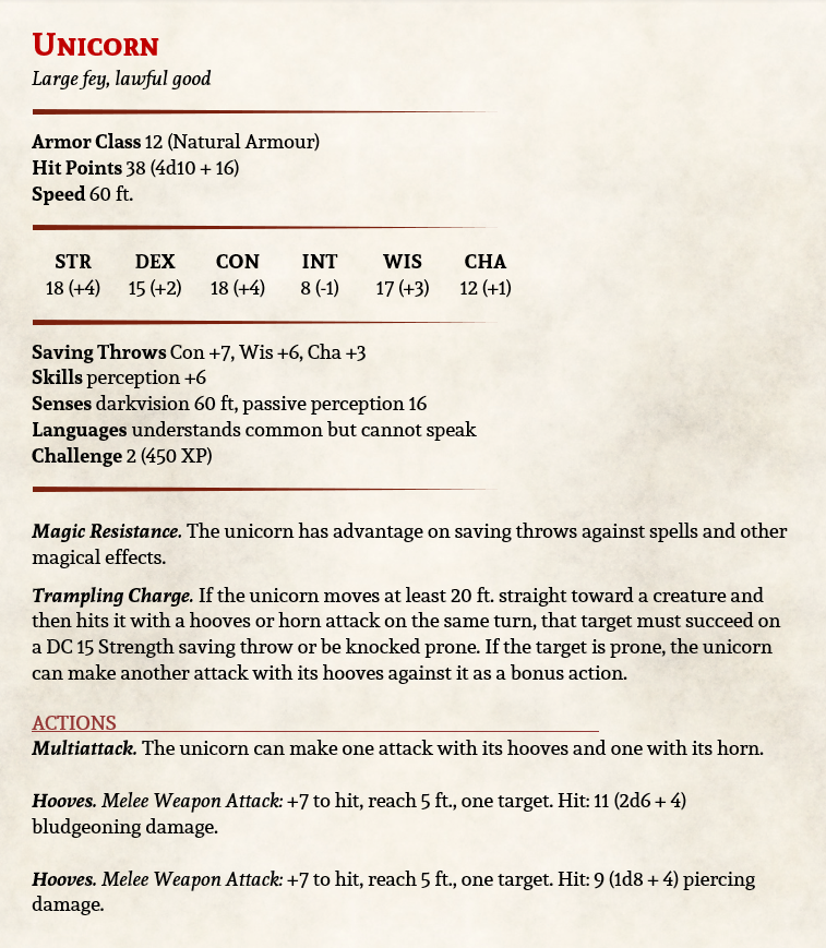 But if you want a more run-of-the-mill majestic creature, with a little bit more grace, this new stat block is worth a look.