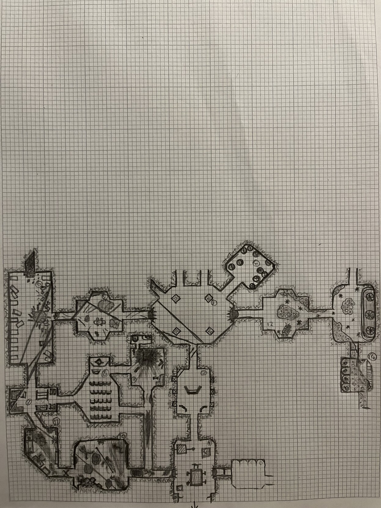 As I mentioned last week, this mega dungeon was the grand attempt of civilization to outmanoeuvre the dark fate laid out by a series of increasingly apocalyptic prophecies. This was not a dungeon at its creation, but several tiers of laboratories, conference chambers, computer banks and bleeding-edge industry trying to expand and develop until an apocalypse finally slipped through.
